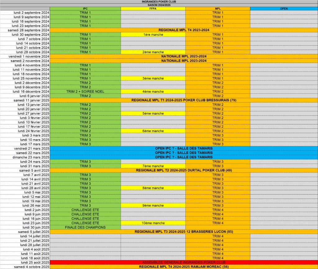L’Ingrandes Poker Club a réussi à se maintenir dans le paysage associatif et à se développer depuis 2010 malgré des contextes économiques ou sanitaires difficiles. Le club compte d’ailleurs désormais plus de 20 adhérents (avec une affluence record et historique en cette année 2024/2025).