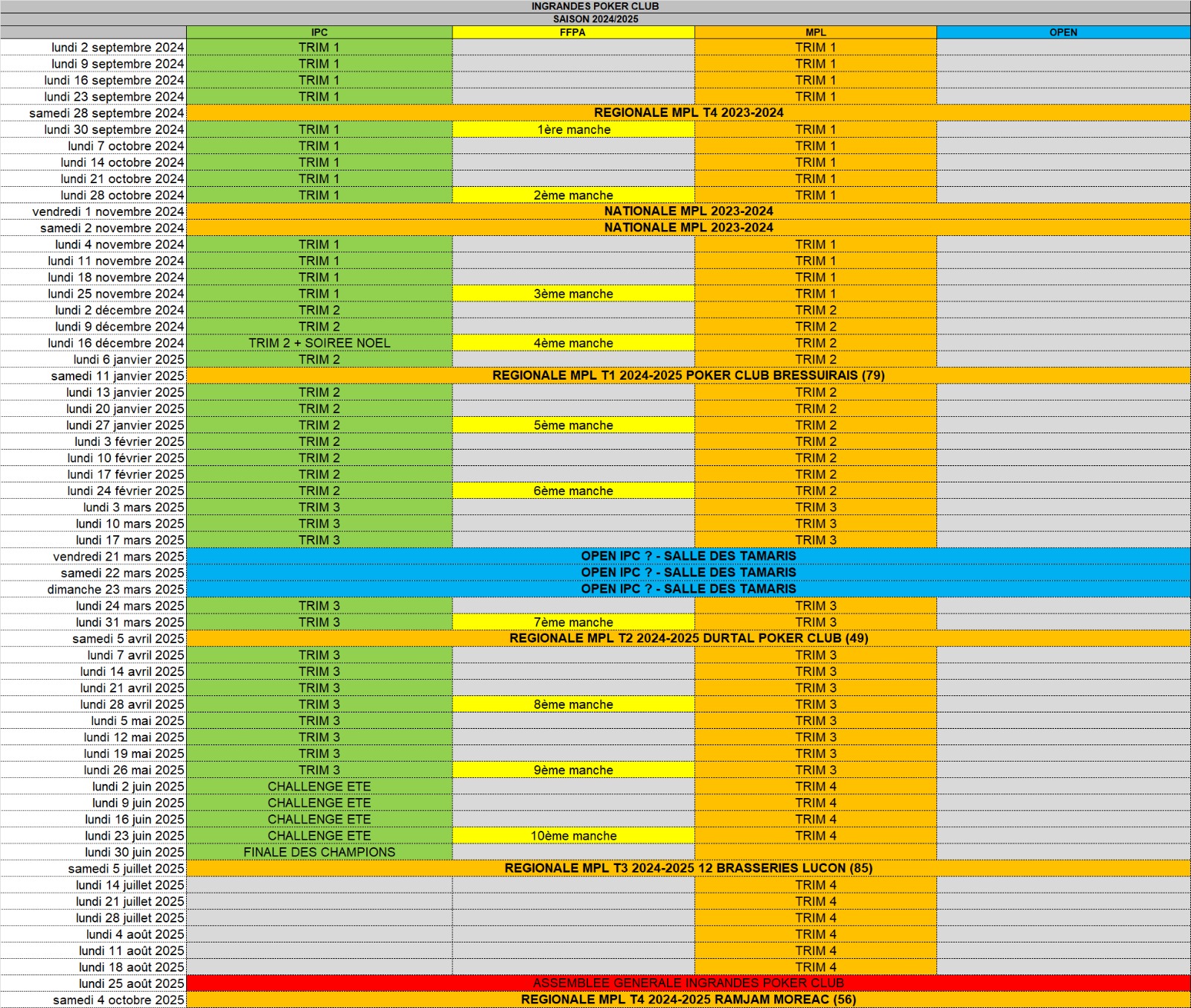 L’Ingrandes Poker Club est une association loi 1901 à but non lucratif et a pour objectif de promouvoir le Poker, et en particulier sa variante « Le texas Hold’em No Limit » en assurant un cadre légal et officiel aux adhérents.