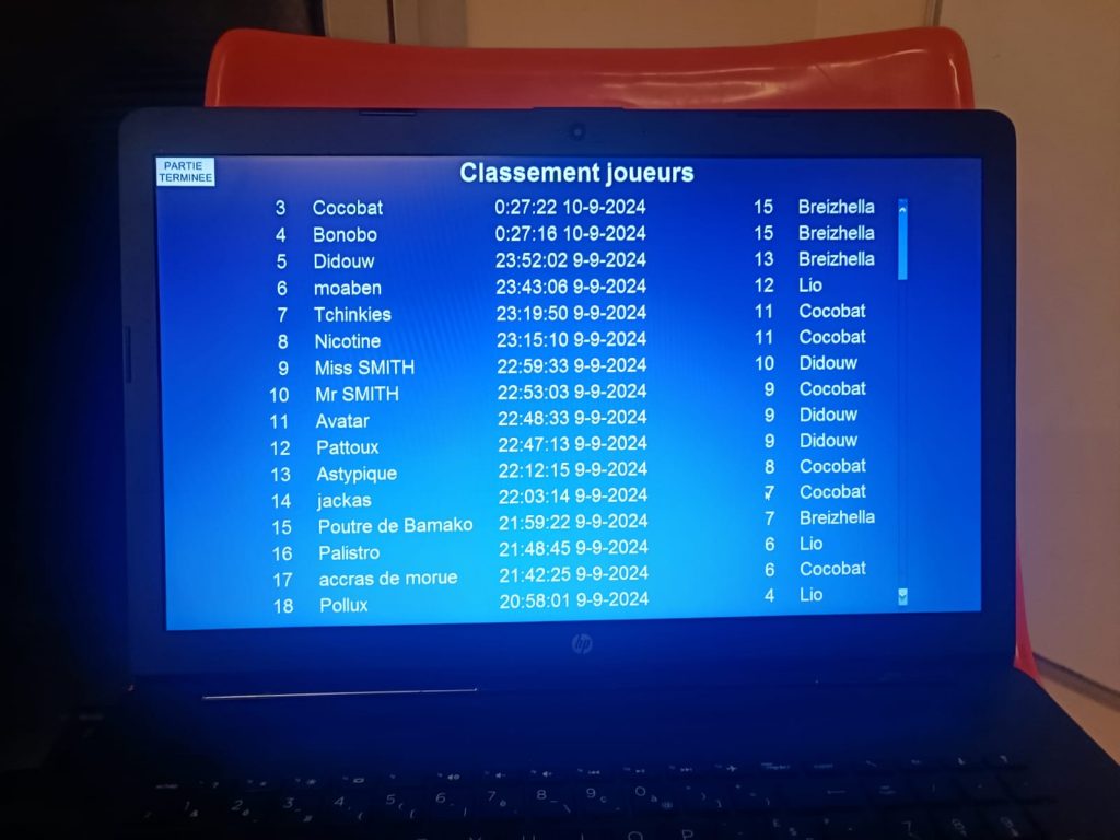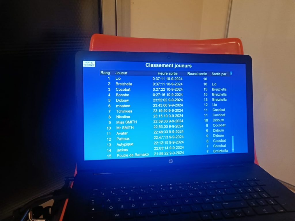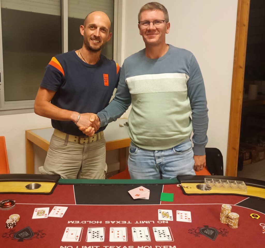 Ce fut l’ultime tournant d’une partie qui ne manqua pas de rebondissements (c’est ça aussi le poker, et c’est ce qu’on aime) : BREIZHELLA fit all-in avec hauteur Q, payé par LIO avec K3 coloriés, qui se transformèrent en brelan de 3 flopés grâce aux doigts magiques de la MORUE, qui assura jusqu’au bout.