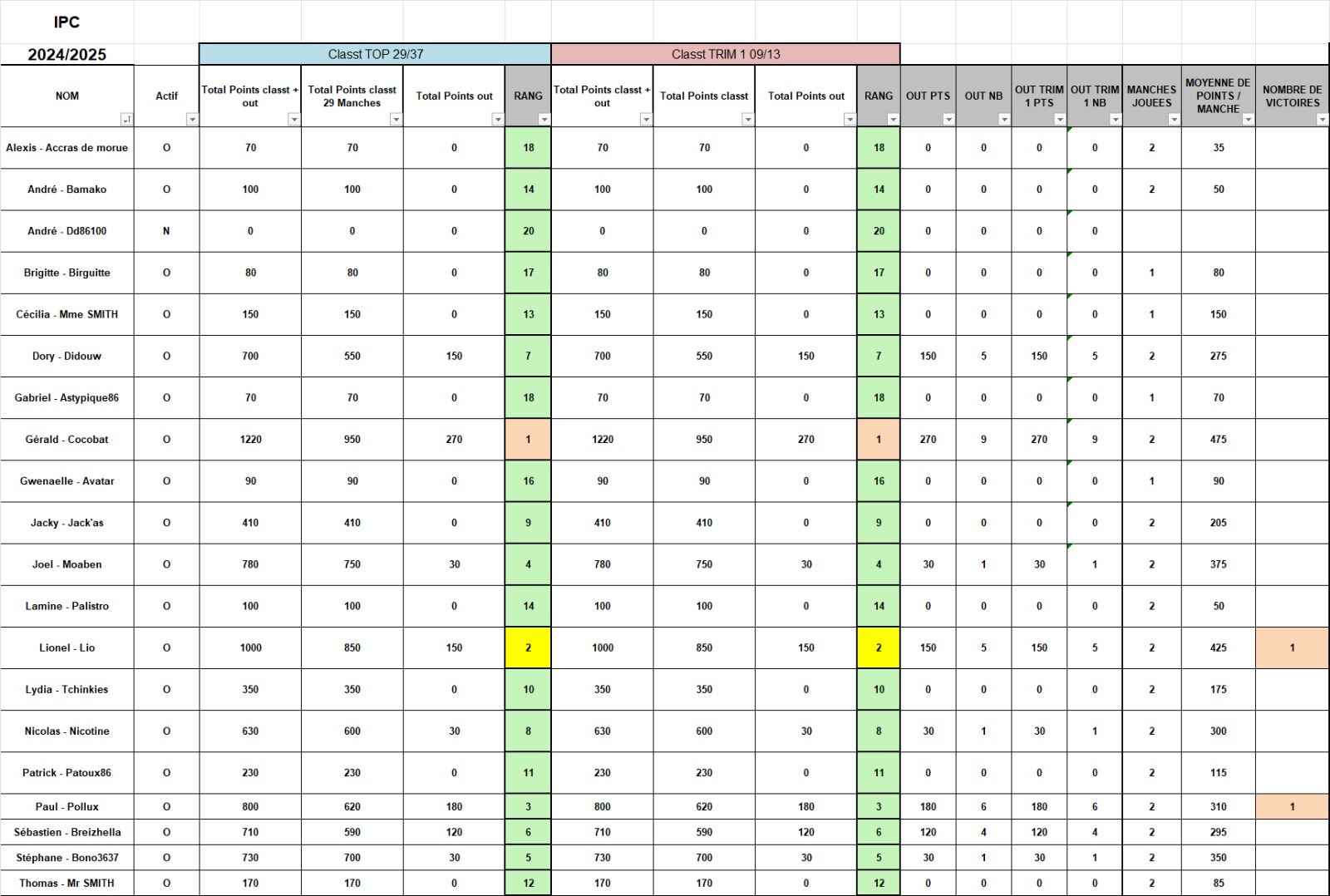 POLLUX n’eut pas la même réussite que la semaine dernière, et son A320 termina sa course dans les tours de LIO avant la pause, pause au cours de laquelle nous pûmes nous délecter des flans préparés avec amour par JOJO, merci à lui. Vint ensuite l’apéro avec la sortie du four des ACCRAS DE MORUE, suivi de près par PALISTRO (qui pourtant avait fort « bien joué quand même »un coup contre LIO (paire de 4 servie qui brelante au flop et fait full river) pour doubler, BAMAKO qui repartit la queue entre les jambes et la poutre sur l’oreille, et JACKY qui eut à peine le temps de s’asseoir et de râler à la table infernale, sitôt arrivé sitôt remercié.
