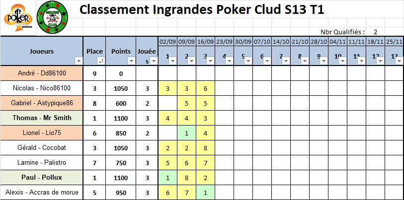 Mais le roi du rebond ce soir ce fut POLLUX, le Mike HORN de la soirée. Tombé à 900 après avoir fait doubler JACKY, il remonta à 20K avant de succomber aux yeux charmeurs de BIRGUIT, tout en gagnant de précieuses places au passage pour finir 4è. Chapeau l’artiste!