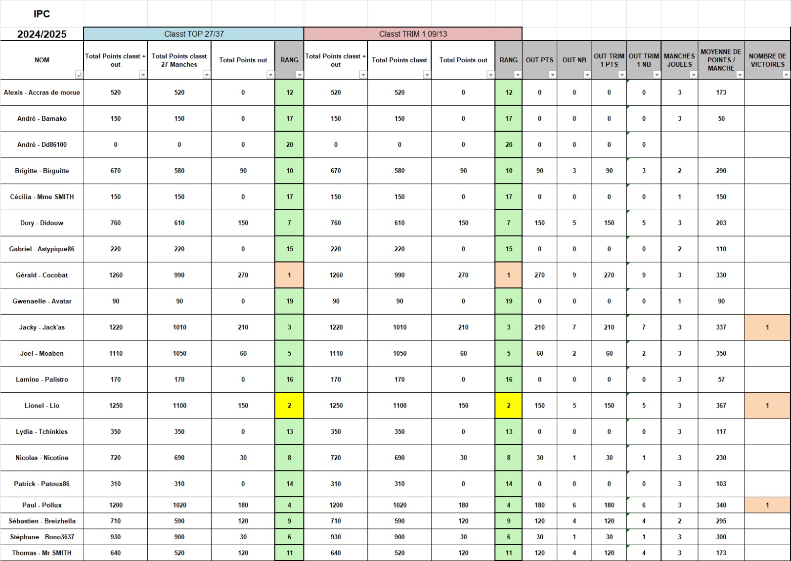 En table 1 TCHINKIES et BONO jouaient à qui sortira le premier et ira faire chauffer la voiture. Ce dernier nous gratifia de deux ou trois rebonds dont il a le secret (l’art de toucher les AA au bon moment, ça aide) et accrocha ainsi une nouvelle TF, alors que TCHINKIES se fit sortir de manière assez sale par JACKY avec un K4 coloriés à pique en 10è place…
