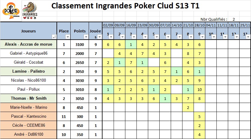 Heureusement, les soirées poker du lundi à INGRANDES sont un bon antidote à la morosité saisonnière et la partie de ce lundi n’a pas dérogé à la règle malgré notre changement d’heure à nous, avec des rounds de 12′ et des pauses de 10′ dans l’espoir non pas d’économiser l’énergie mais du temps, et de finir à des heures plus décentes.