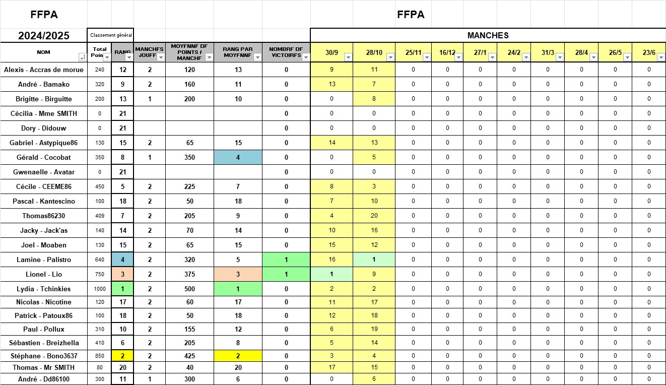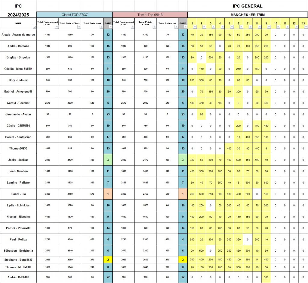 BONO 4è, toujours placé ou presque, échoue au pied du podium sur lequel on retrouve CEEME (2 outs) et TCHINKIES (deux outs également, et une deuxième deuxième place de la saison), mais fait LA bonne opération aux classements (avec les sorties précoces de POLLUX, JACKY, et BREIZELLA), toujours dominés par LIO;).