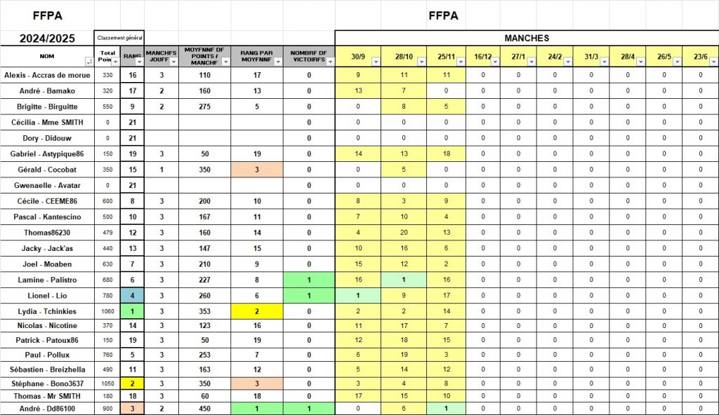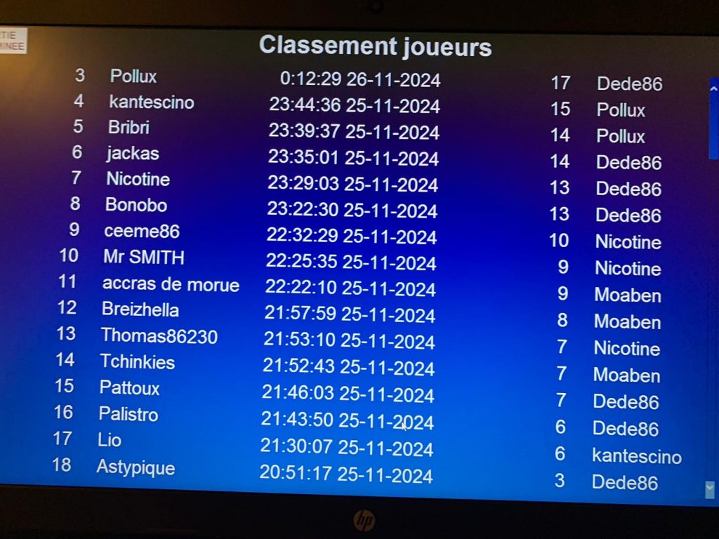 On notera aussi la belle place d’honneur de BRIGITTE, 5è juste devant JACKY, qui se consolera de ne pas avoir pu faire mieux par sa victoire trimestrielle acquise de haute lutte. La TF a été incroyable, vous êtes restés à 8 pendant 50′, personne ne voulait sortir c’était dingue.