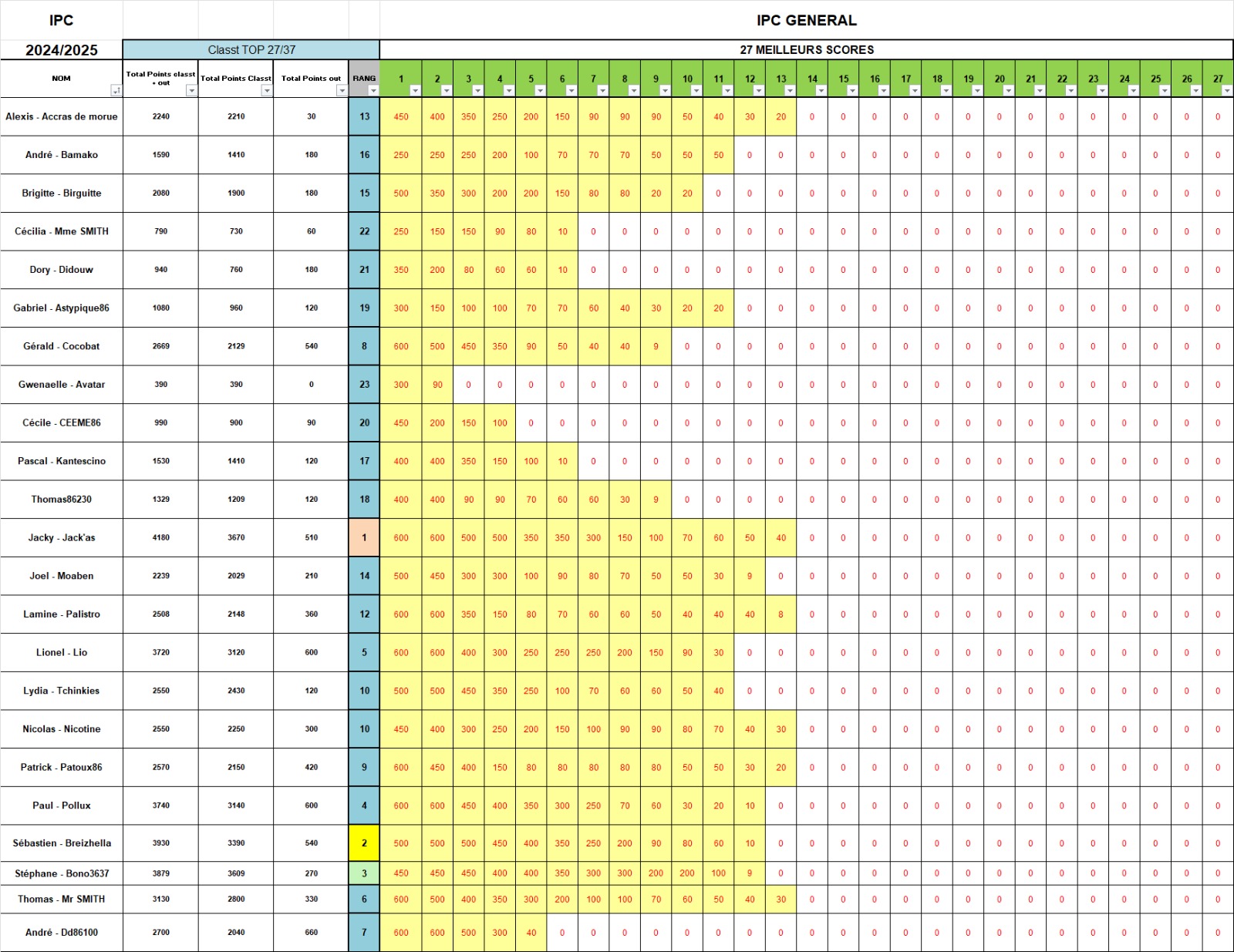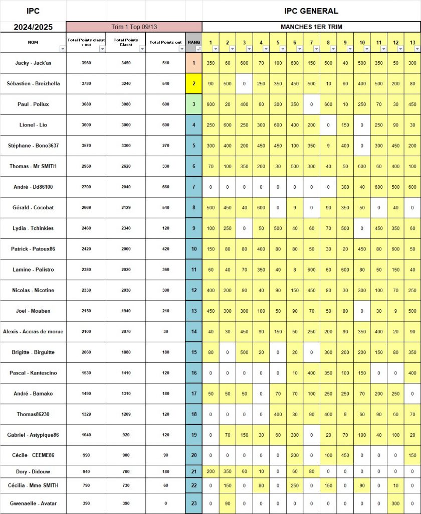 Lundi prochain nouveau trimestre nouveau départ, on remet les compteurs à zéro. Enfin pas tous, rassure-toi mon JACKY tu gardes tes points pour le Général… J’ai hâte d’y être.