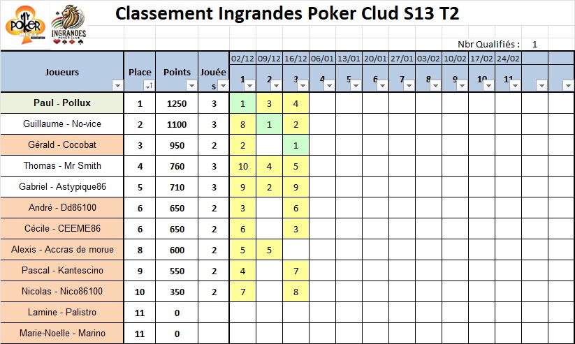 TF! Les femmes en force avec BRIGITTE, CEEME, et MME SMITH dans les 8. THOMAS ne passera pas la barre des 23h mais une place en TF c’est déjà bien. A ce stade plus de cadeaux ni de solidarité féminine, CEEME joua crânement sa survie en croquant MME SMITH et POLLUX, mais devra finalement s’incliner face au maître JEDI, JACKY. Quant à COCO, il paria sur une startégie d’usure qui au bout d’un moment finirait bien par payer face à BRIGITTE : il la renfloua généreusement (notamment sur un brelan de K plus que probable) avant de tout lui reprendre. Ce n’est pas très gratifiant, mais terriblement efficace comme stratégie, et puis de toute façon, c’est le Président, il fait ce qu’il veut (il peut même dissoudre l’Assemblée si vous n’êtes pas contents ok?).