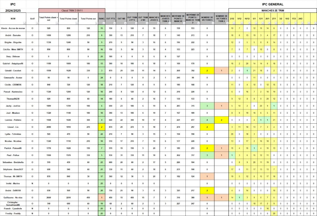 Au trimestre, no souci pour NO-VICE avec 2600 points, 600 points devant le duo LIO-COCO, et 700 points devant PALISTRO, POLLUX, et JACKY.