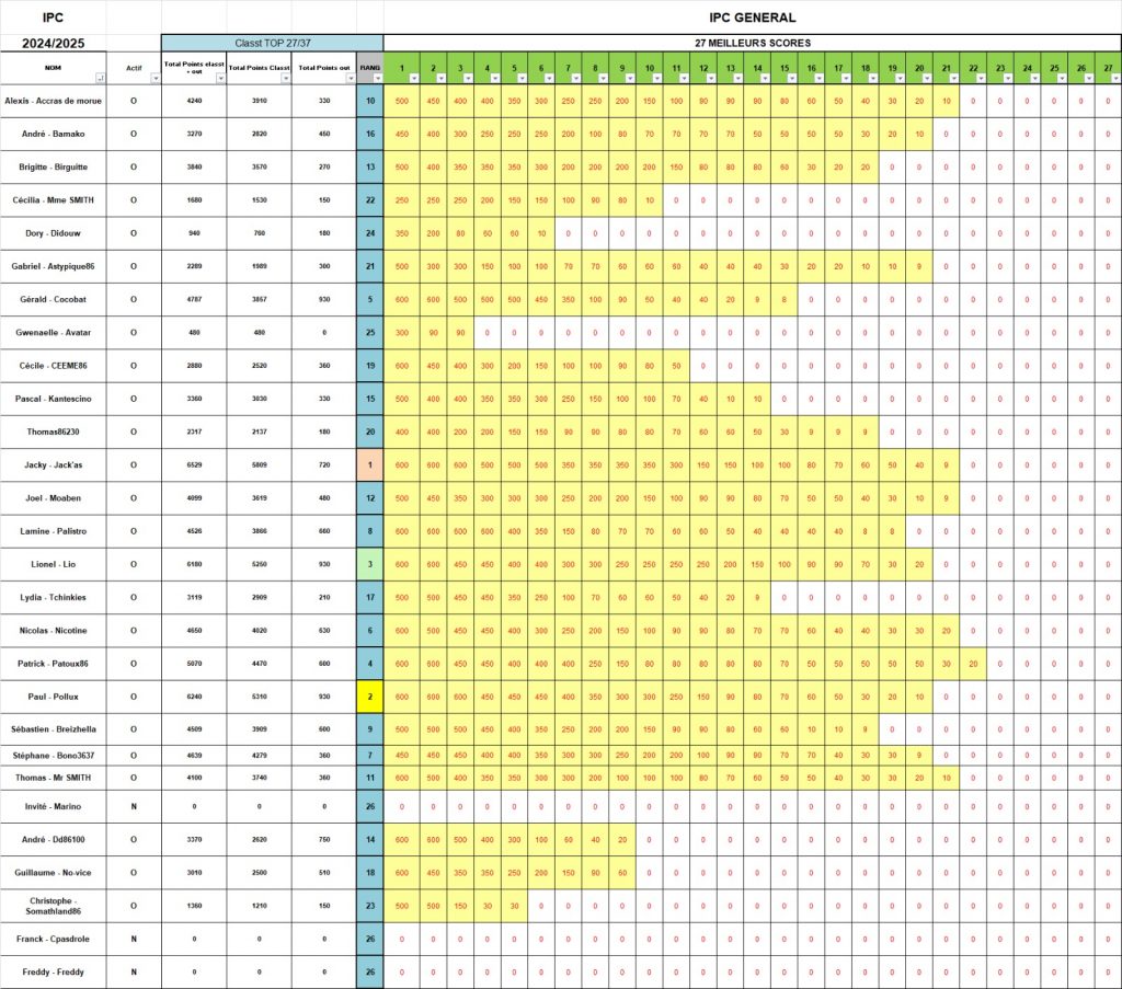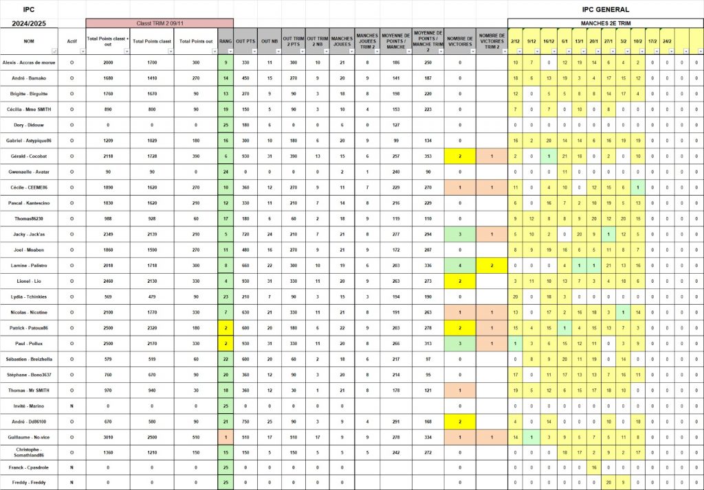 19 joueurs ce soir (mais pas AVATAR, au grand dam de COCO), avec en table 1 NICO POLLUX MOABEN BONO BRIDGET CEEME, en table 2 PALISTRO COCO PATTOUX ACCRAS NO-VICE ASTYPIQUE DD, et en table 3 (vous savez la table la plus proche de la sortie) THOMAS JACKY BAMAKO KANTESCINO SOMATLAND LIO.