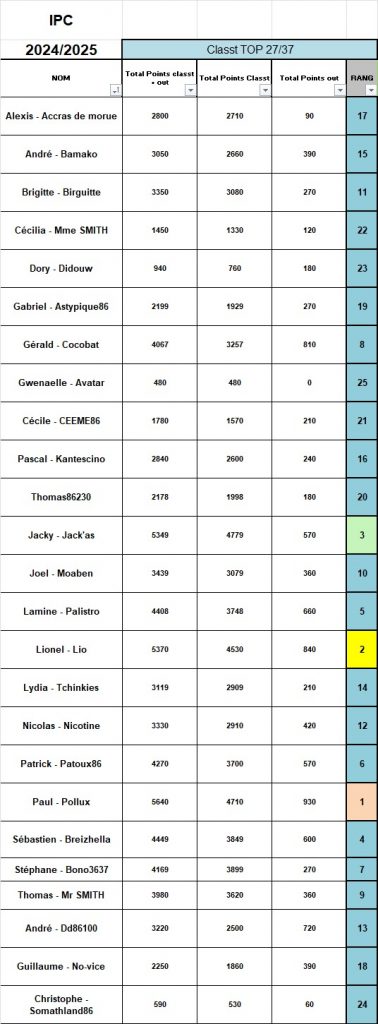 Mais revenons à INGRANDES. CPASDROLE pour une première d’être à la même table qu’ASTYPIQUE, BONO, NICO, KANTESCINO, sans oublier MOABEN (notre champion en titre), NO-VICE, et SOMATLAND. On a connu des tables plus tranquilles. La 2 par exemple, à priori, avec BRIDGET, BREIZHSTORM, CEEME, MR SMITH, rajoutez PALISTRO et POLLUX pour secouer tout ça et vous êtes bons.