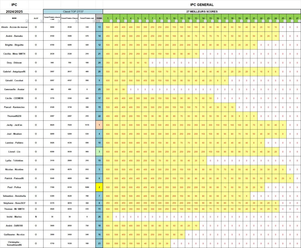 Pas sûr, beaucoup de manches et de points restent à distribuer, mais ça ne va pas être simple d’aller le chercher le JACKY. Bravo à lui, et à MOABEN, qui mine de rien pointe son nez dans le top 5, à la quatrième place, après un début de saison totalement raté. Prometteur tout ça.