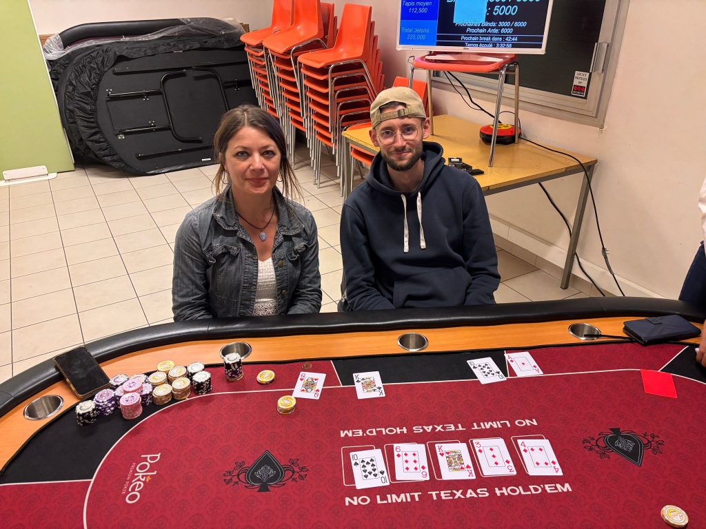 Je ne sais pas ce qu’ils avaient en table 2, une chose est sure ils étaient bien survoltés, avec notamment un PATTOUX chaud comme la braise. Certainement vexé d’avoir perdu quelques plumes dans les premiers coups, il n’hésita pas à nous envoyer son tapis à la figure avec des petites paires (paraît-il?), pré-flop naturellement, alors qu’il avait encore de la profondeur (plus de 20BB), et ce à plusieurs reprises. ASTYPIQUE et PALISTRO lui engrayèrent le pas, autant dire qu’à ce rythme on n’allait pas rester au complet très longtemps. THOMAS n’étant pas là ce soir, qui allait sortir le premier??
