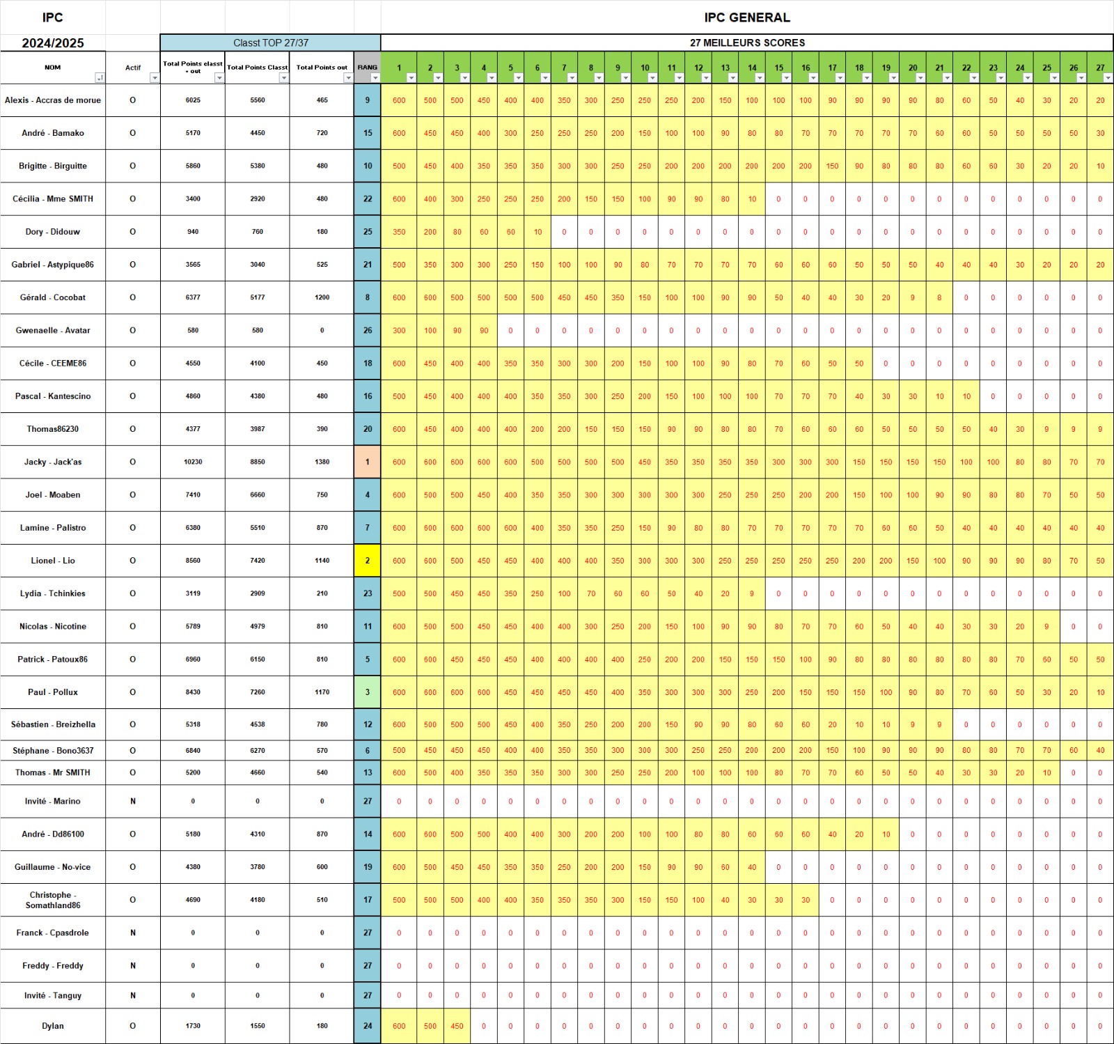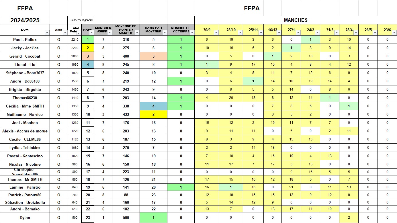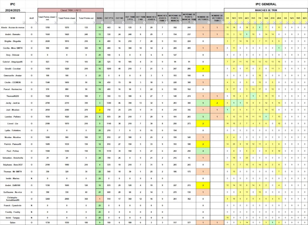 Au Général, JACKY se rapproche du titre semaine après semaine. Au classment trimestriel, SOMATLAND est devant, suivi à bonne distance par JACKY et MOABEN.