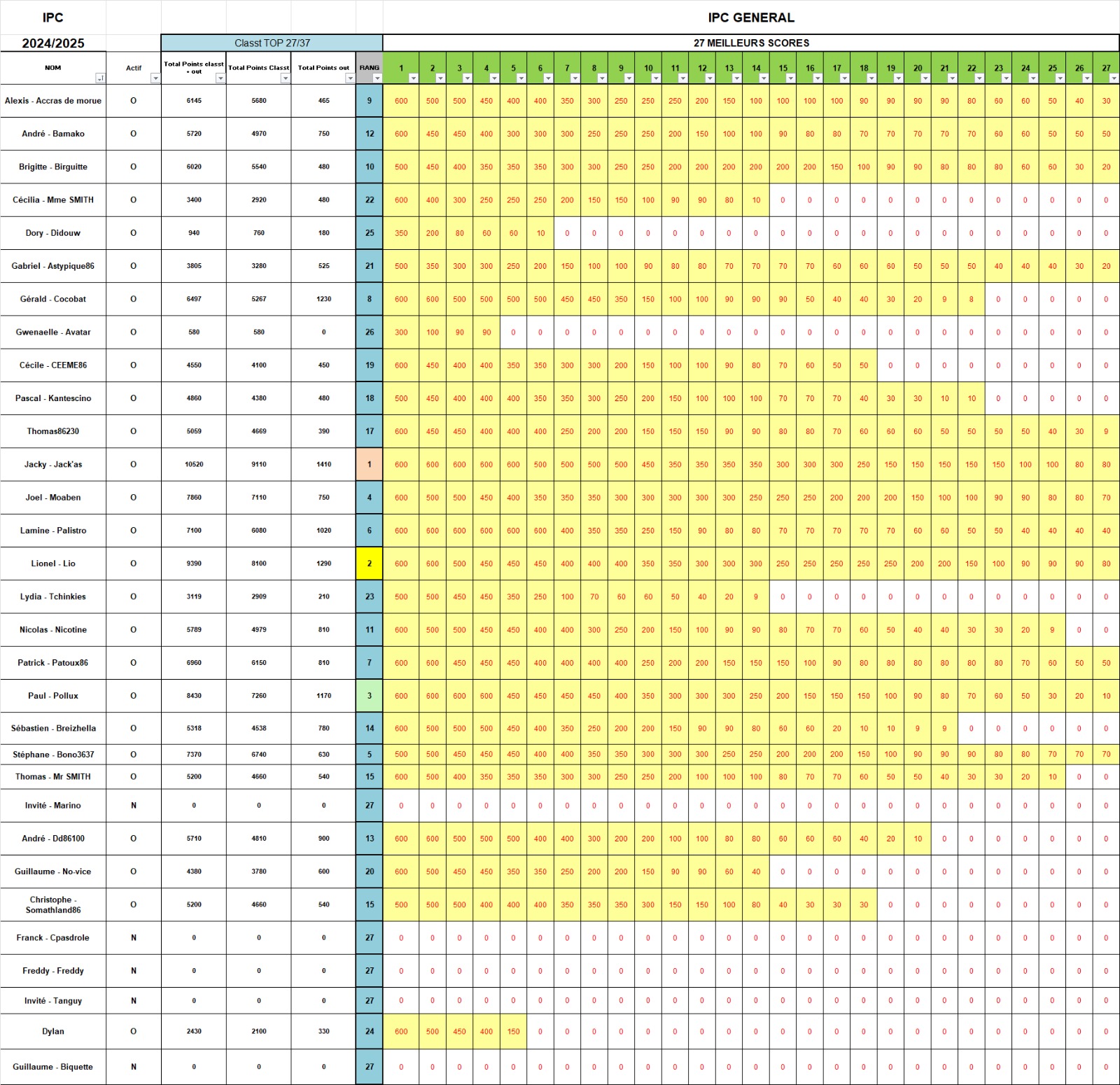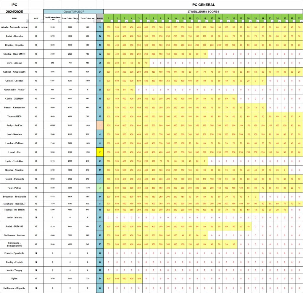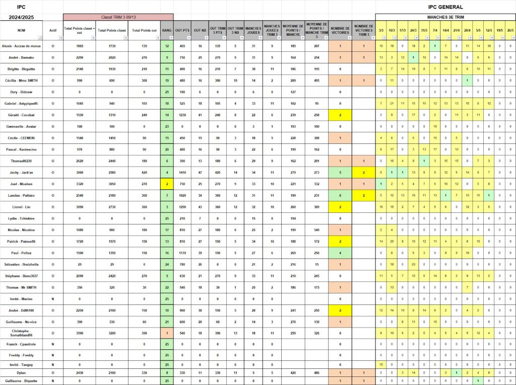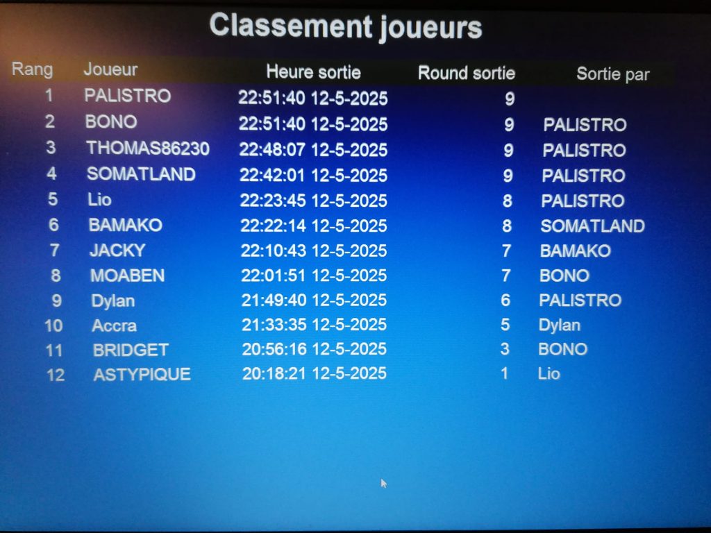 Après la pause, nous perdîmes ACCRAS, puis son bourreau DYLAN qui pas de bol pour lui (…) perdit un 80-20 contre PALISTRO (77 vs 55 qui brelantent), si bien que JACKY gagna encore deux places et se retrouva en TF (ça me rappelle quelqu’un…)