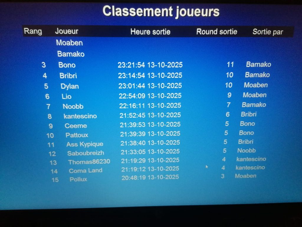 MANCHE 7 DU 13 OCTOBRE 2025 Ingrandes Poker Club13 octobre 202525 octobre 2025Championnat IPC Félicitations à MOABEN