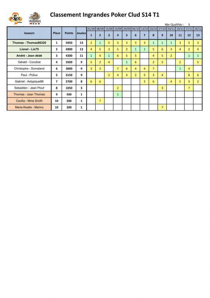 - 3 Victoires / 13 manches